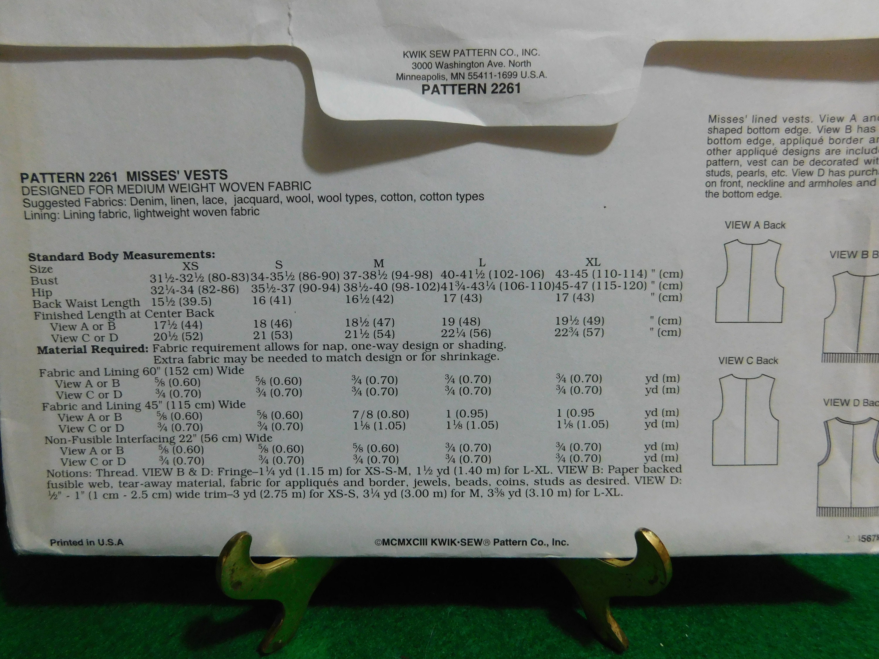 Misses Vest Pattern Kwik Sew 2261 Etsy